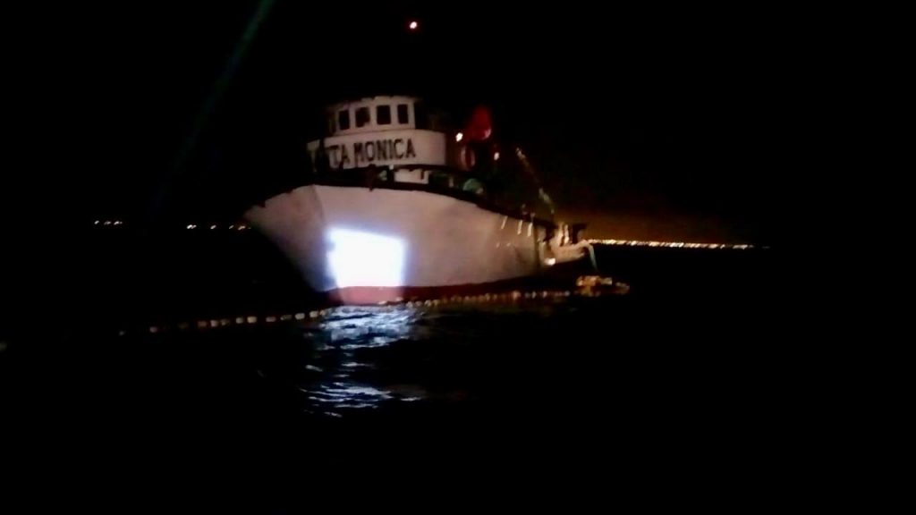 En este patrullaje realizado acorde a la legislación ambiental vigente, se llevó a cabo la retención de la embarcación “Santa Mónica” la misma que se encontraba a 3,42 millas náuticas dentro de la reserva en la zona de uso artesanal, con red de cerco industrial y con winche mecánico, por lo que personal del Ministerio del Ambiente y Agua, retuvo la pesca, el arte y la embarcación.